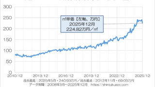 2025年を通じて、東京都内の中古マンション価格は14%上昇したことが判明しました。国土交通省『住生活基本計画(全国計画)』(令和3年3月19日閣議決定)では、「最低居住面積水準」は独居で25平米、2人以上で暮らしている […]
