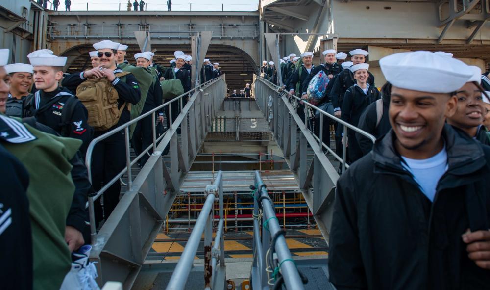 母港横須賀に戻ったロナルドレーガンの乗組員です。