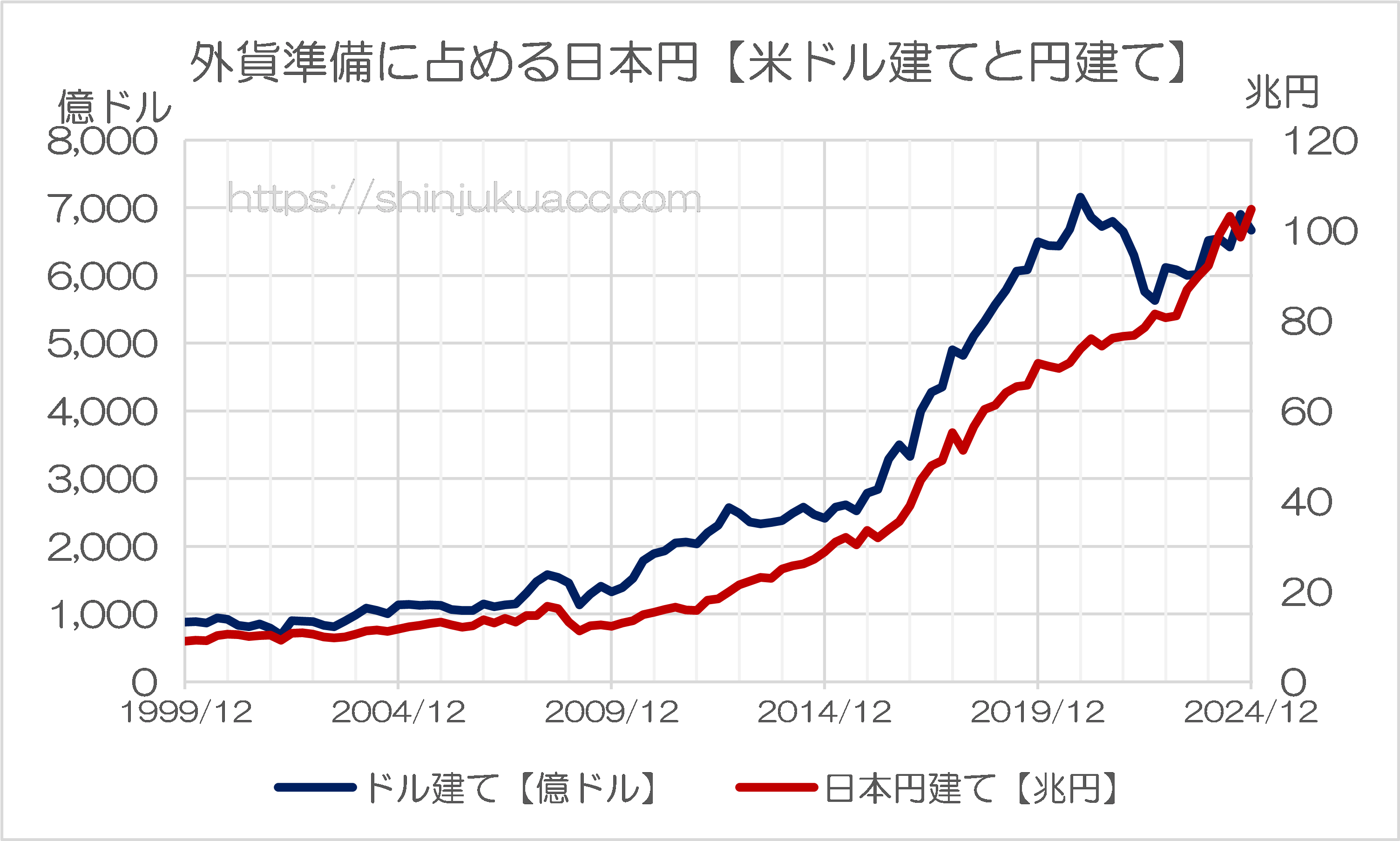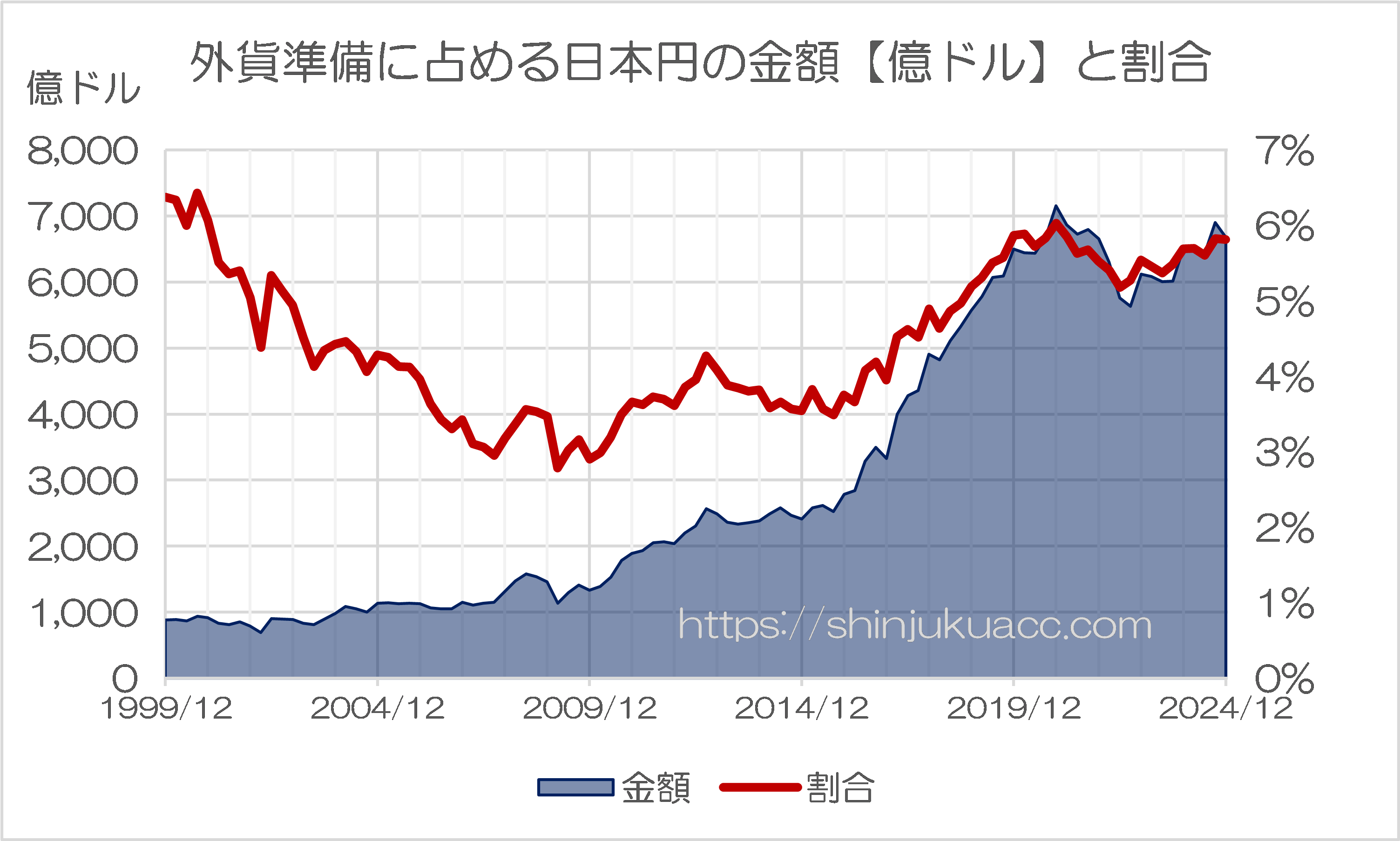 外貨準備は各国の政府、中央銀行といった「通貨のプロ」が、いざというときのための準備として備えておくものです。もしも日本円という通貨の信認が毀損しているというのであれば、なぜ日本円の組入額がここまで増えているのか、説明が付きません。