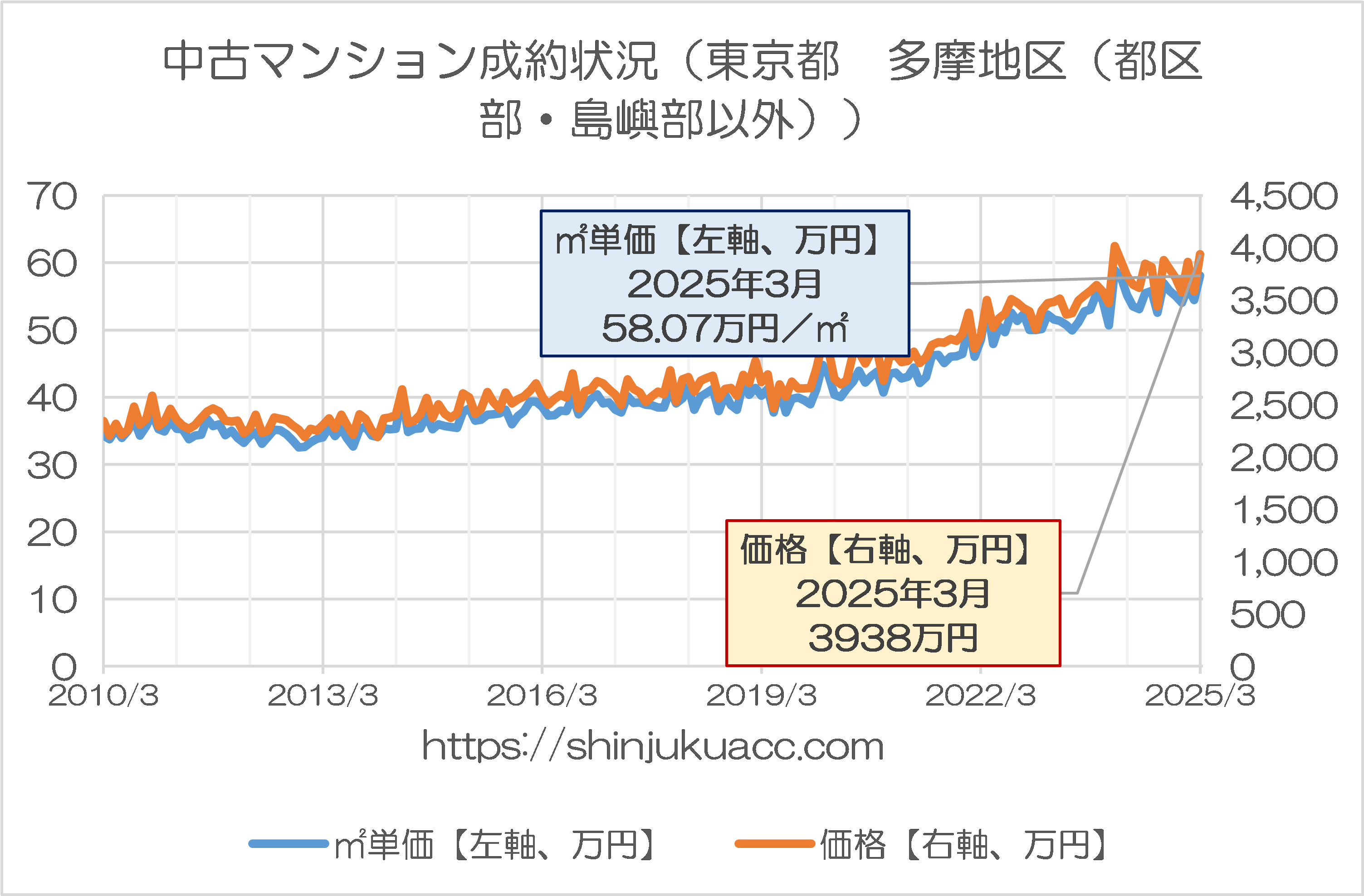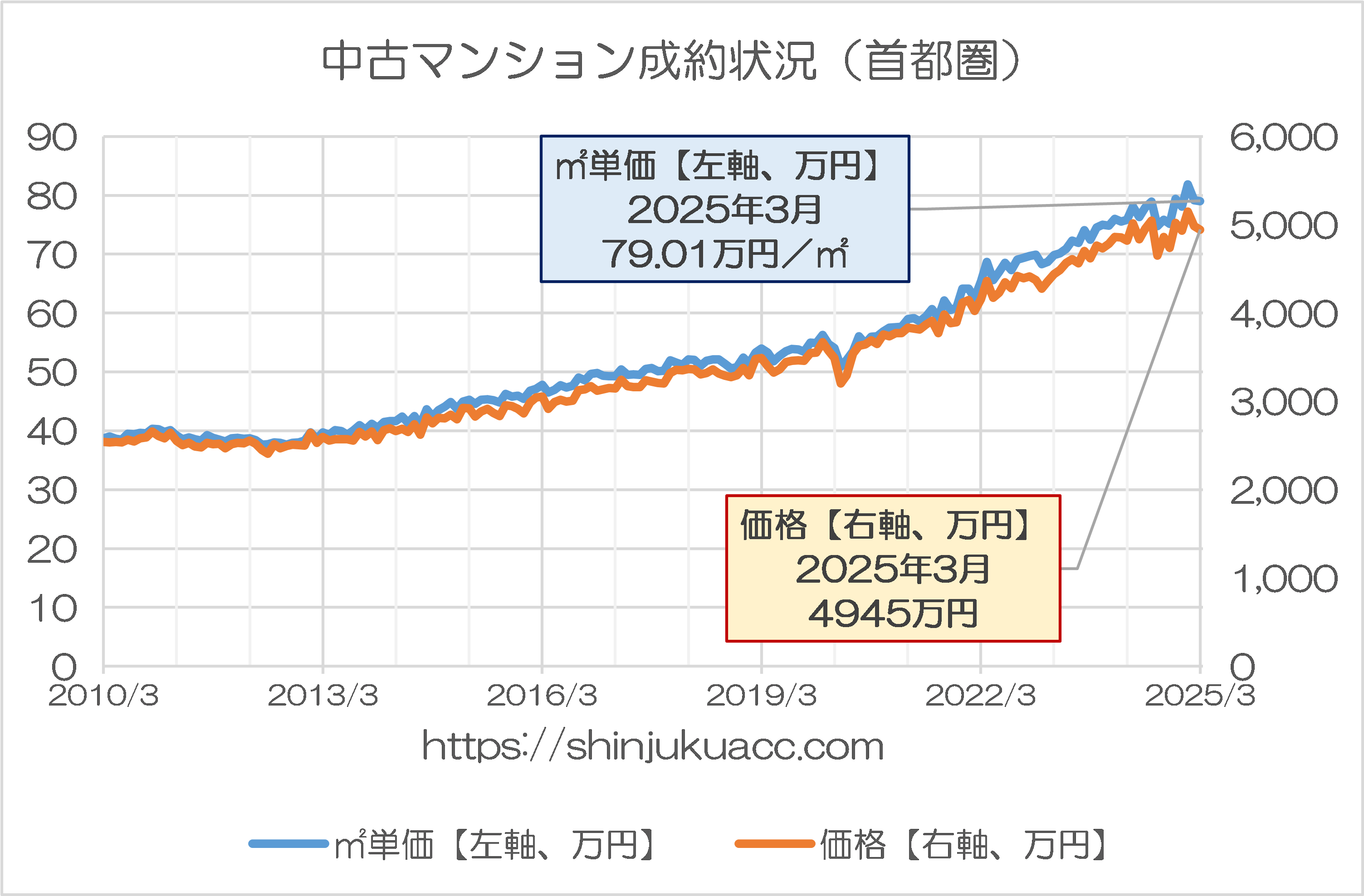 最近、個人的に強く注目しているデータがあるとしたら、それは首都圏の中古マンション価格です。