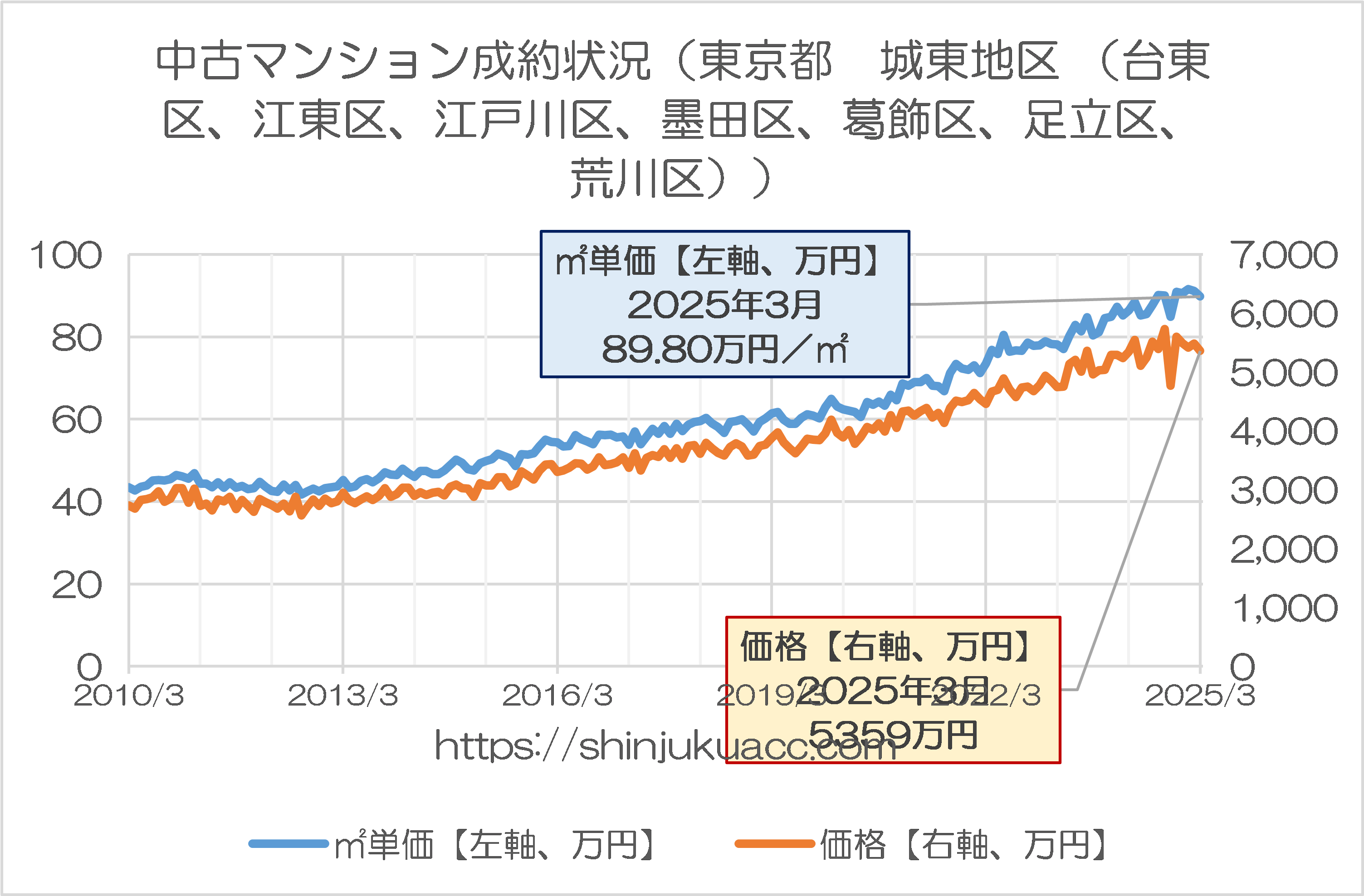 当ウェブサイトでは最近、公益財団法人東日本不動産流通機構(東日本レインズ)が公表している中古マンション成約状況に関するデータを参考にすることが増えています。中古マンションに関する価格指標について、まとまって把握することができ、便利だからです。