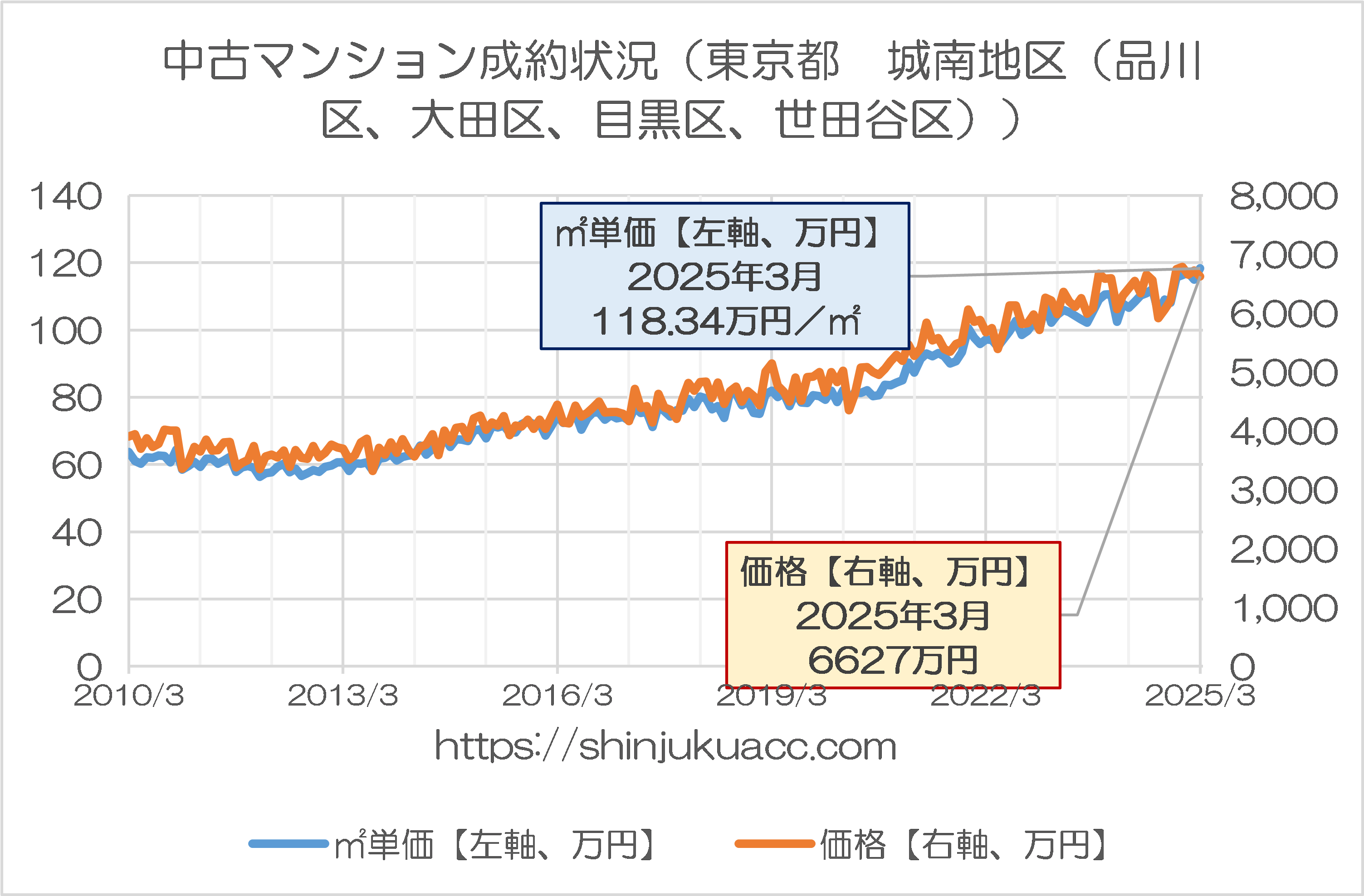 図表2-3 中古マンション成約状況(東京都 城南地区(品川区、大田区、目黒区、世田谷区))