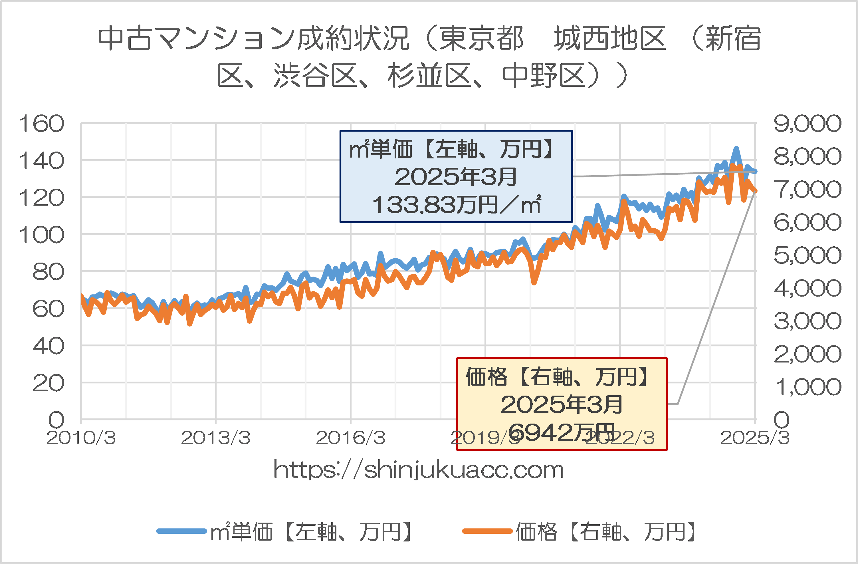 当然、新築物件は供給価格が高止まりしますし、いわゆる「新古物件」などの人気も高まっていて、玉突き的に中古マンションの価格が上昇していく、という構図です。