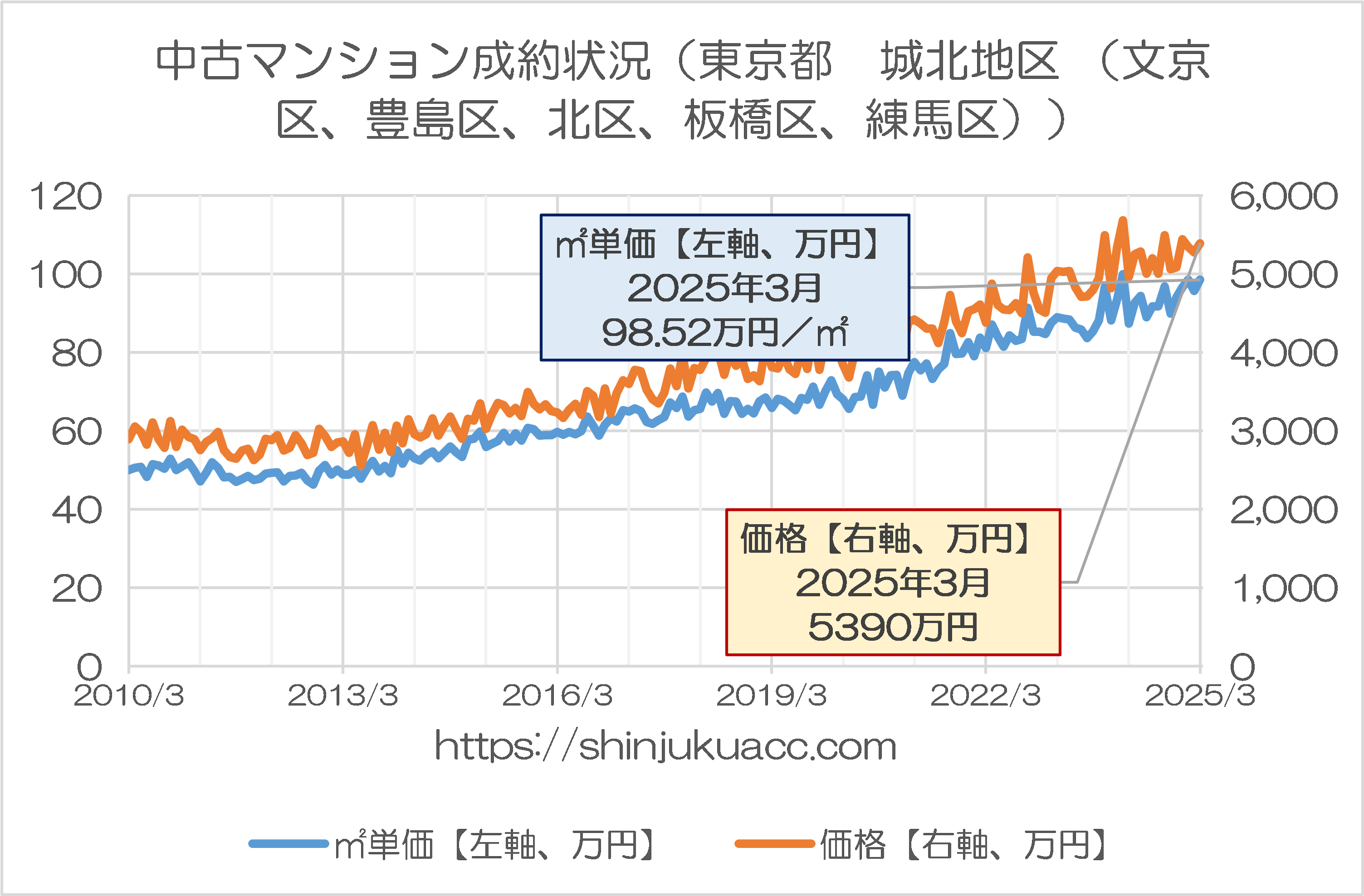 図表2-5 中古マンション成約状況(東京都 城北地区 (文京区、豊島区、北区、板橋区、練馬区))