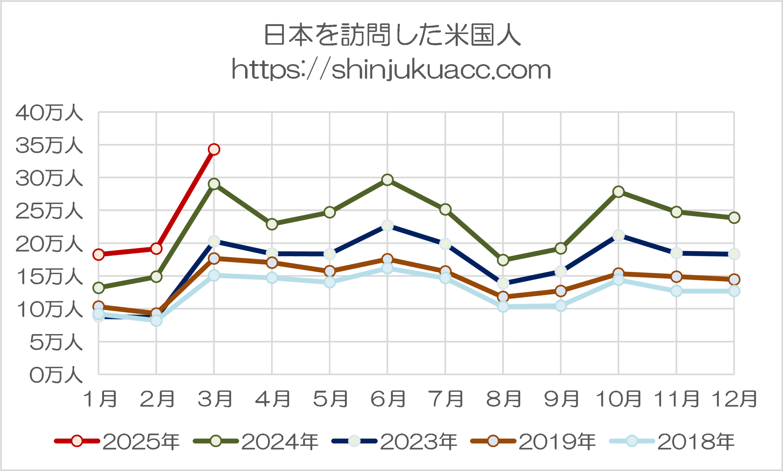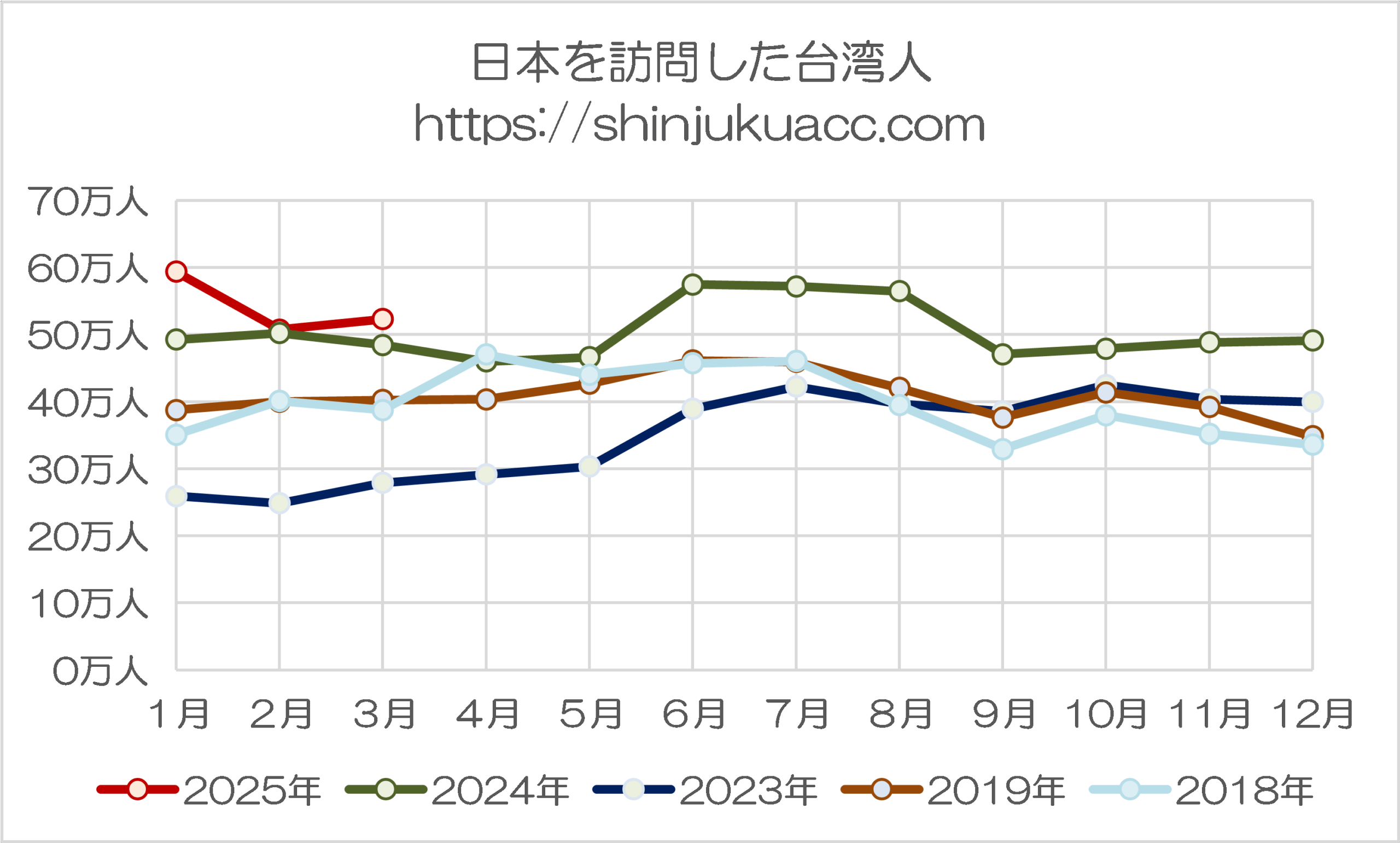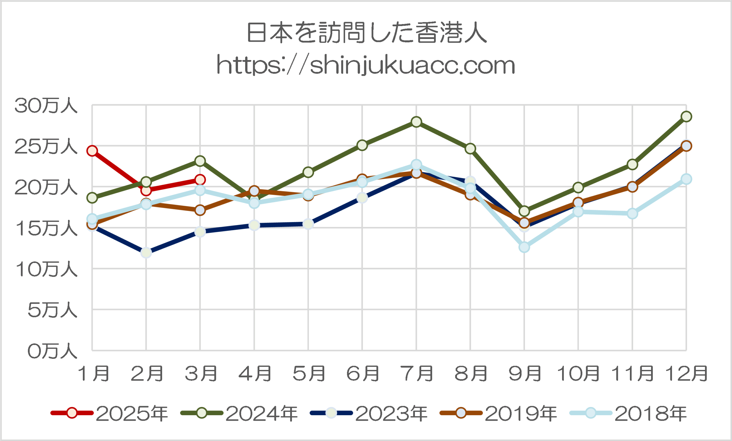 また、台湾人に関しても3月としては過去最高値ではあるものの、伸び率としては鈍化傾向にありますし、香港も過去最大だった2024年の水準を割り込んでおり、過去最高を記録した米国とは好対照をなしているのです。