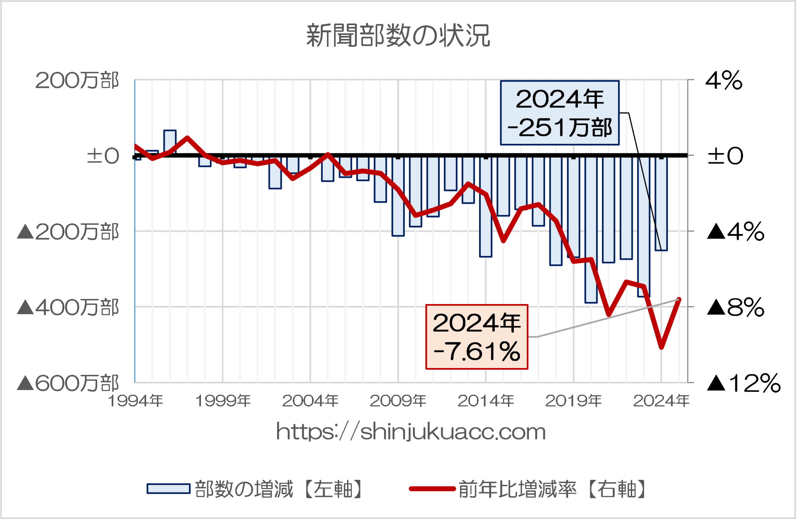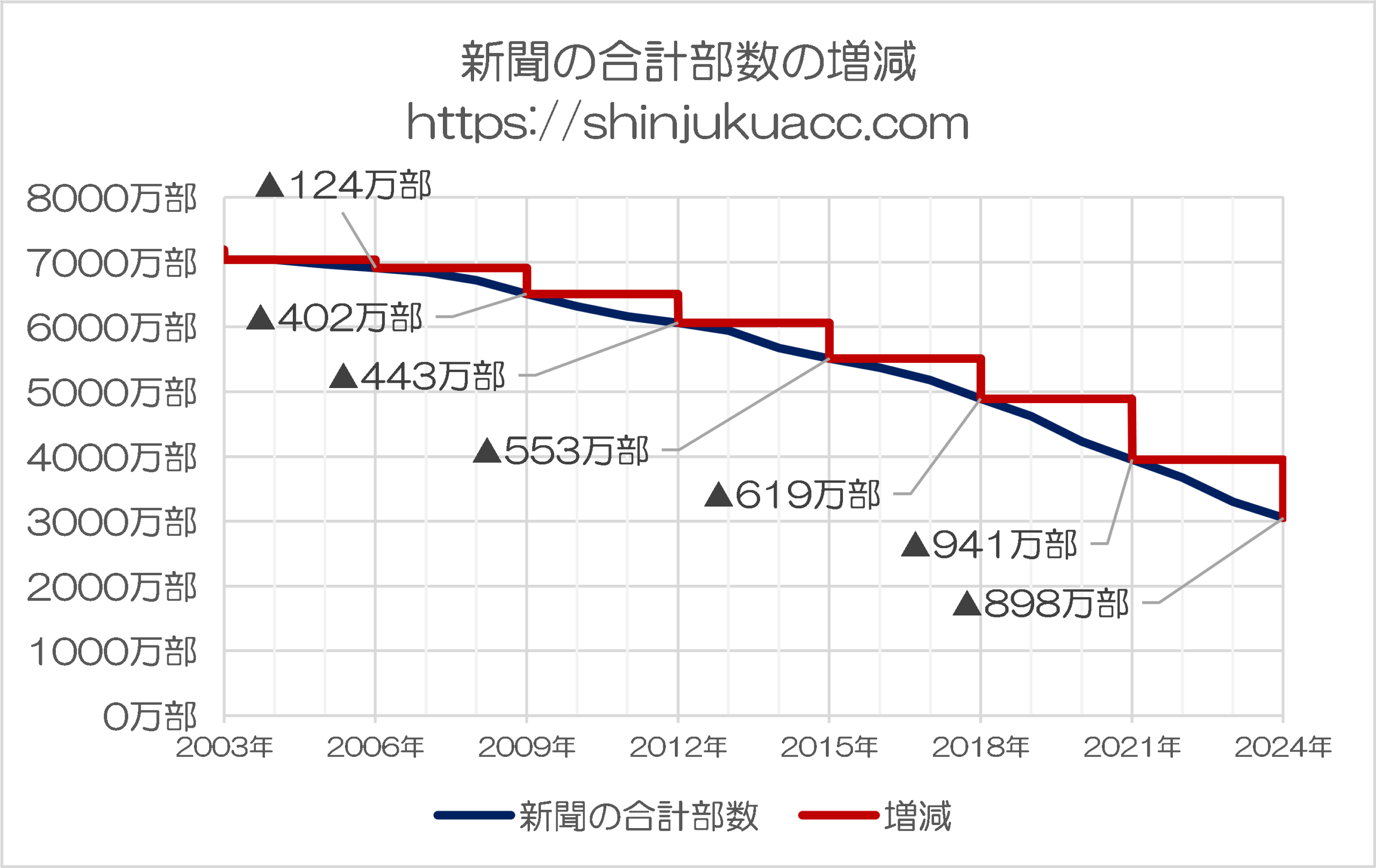 新聞部数の減少、年によって400万部近くに達することも!