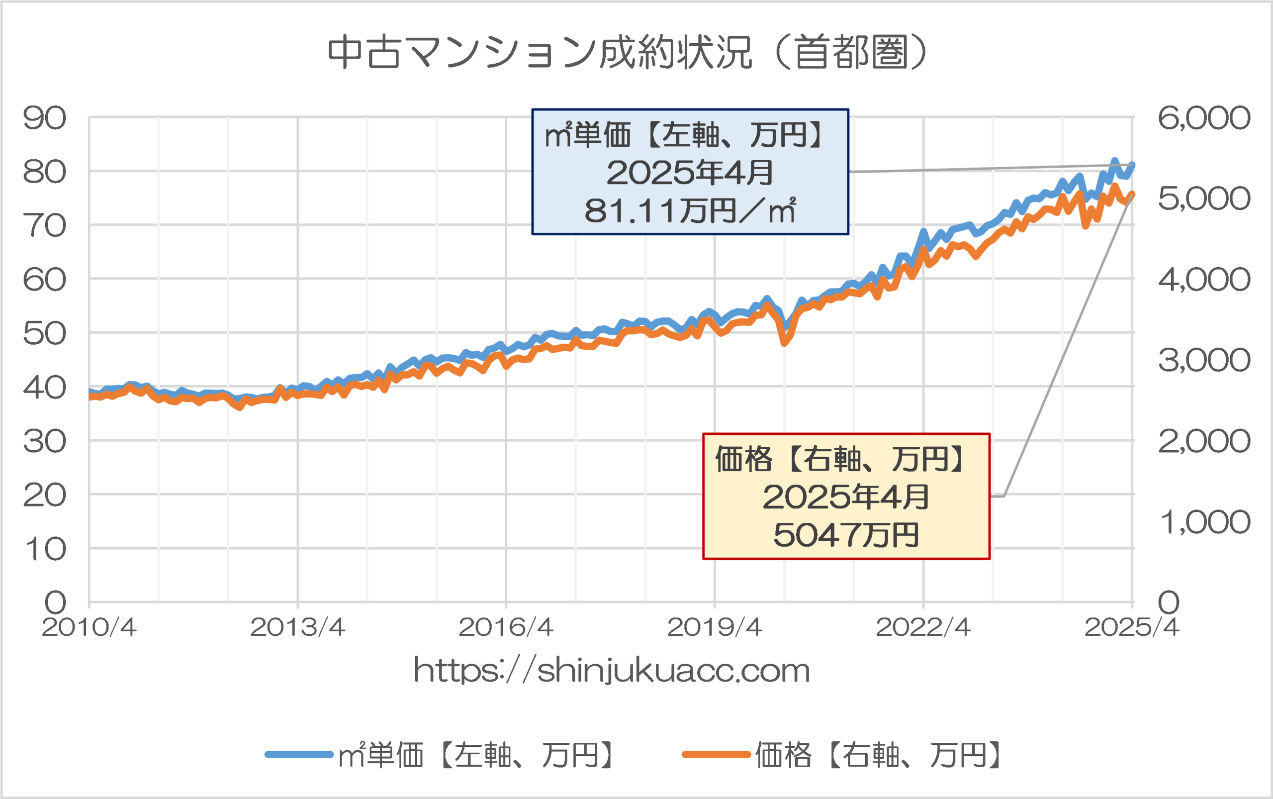 こうしたなか、公益財団法人東日本不動産流通機構(東日本レインズ)は毎月、首都圏の中古マンションの価格(成約、新規、在庫)など不動産価格に関するデータを公表しており、これについては『レインズデータライブラリー』のページで閲覧することができます。