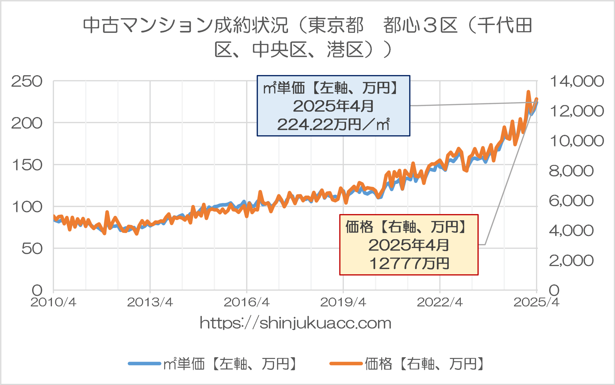 日本全体として不動産価格がピークをつけているなかで、東京都内だけ上昇が続いている、などと見るべきなのか、それとも投機的なマネーが入っていると見るべきなのか、などについては現時点で断言できませんが、いずれにせよ、東京都内にマンションを買うというハードルが上昇していることは間違いなさそうです。