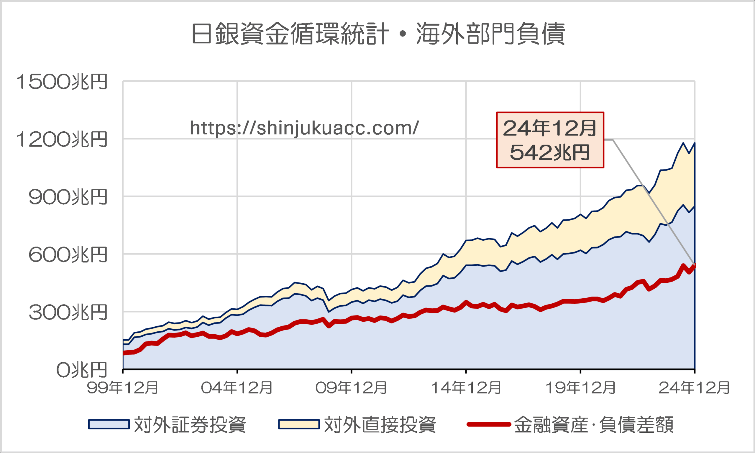 早い話が、日本企業は対外投資を積み上げる一方、外国企業などはあまり日本に投資していない、という意味です。