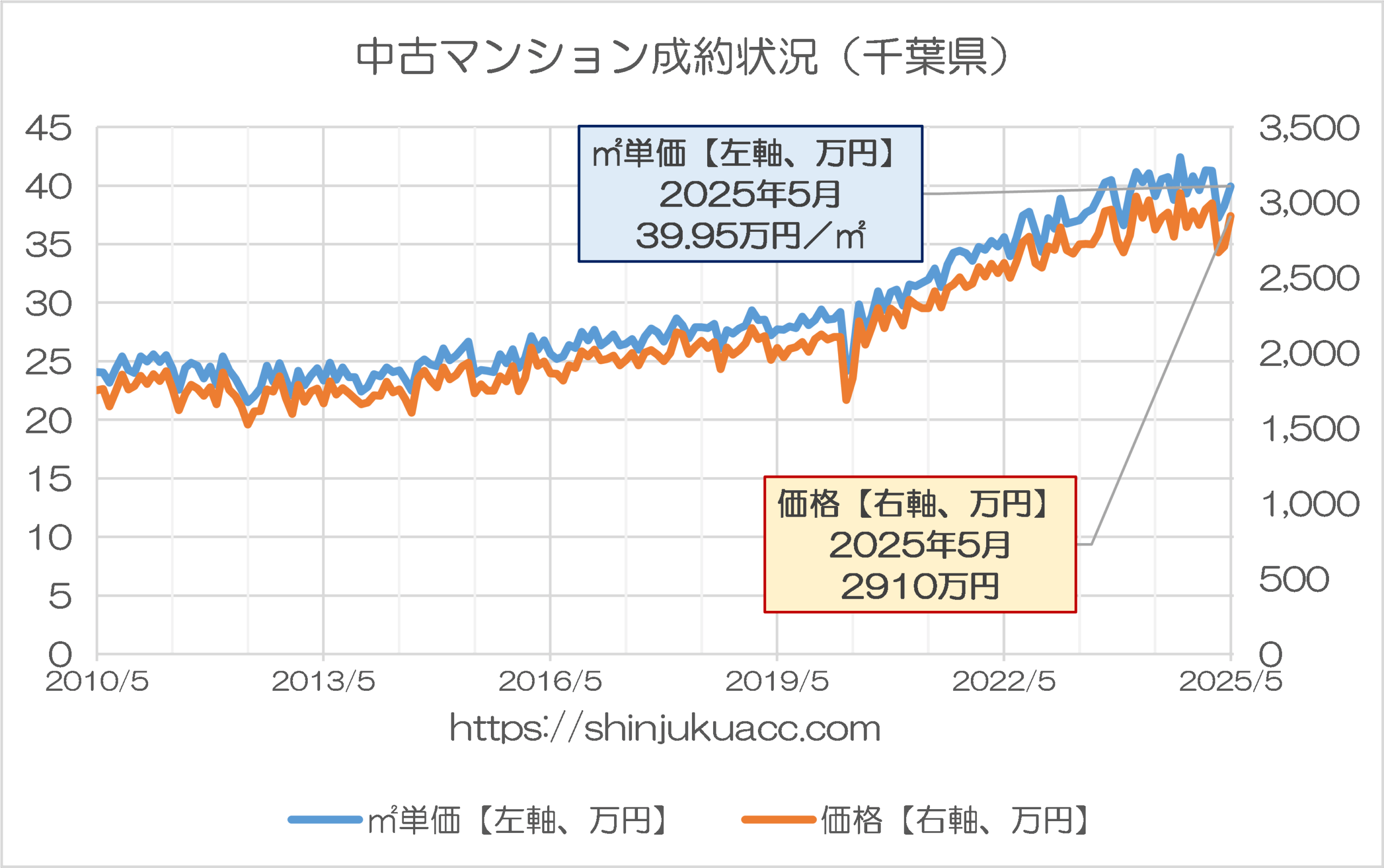 ただ、埼玉県は42.10万円/㎡で前月比0.59%、前年同月比で2.46%の下落、神奈川県は57.01万円/㎡で前月比0.89%、前年同月比3.37%の下落であり、また、千葉県は39.95万円/㎡で前月比4.39%、前年同月比2.17%の上昇ではあるにせよ、グラフの形状は東京都とは大きく異なります。