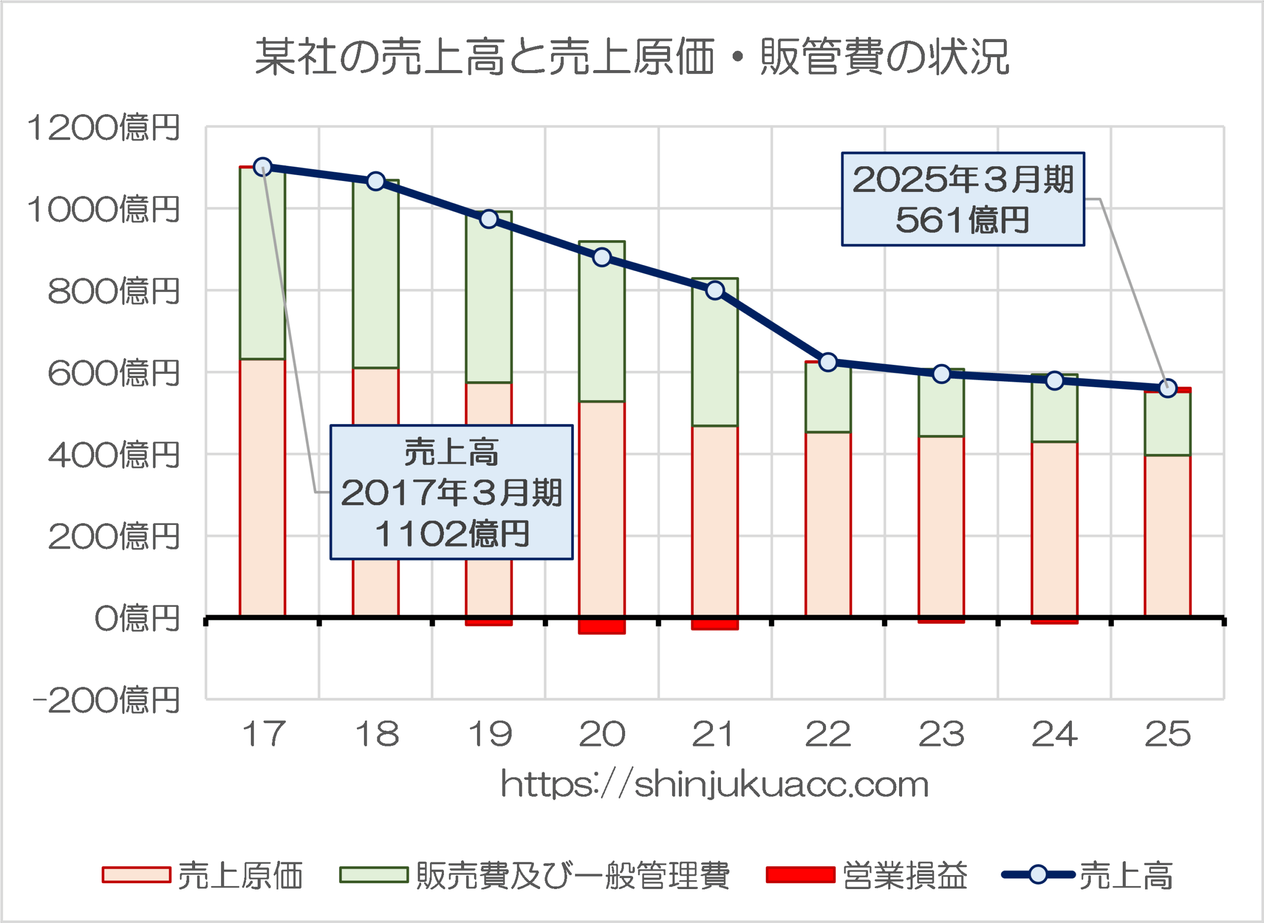 図表 某社の売上高と売上原価・販管費の状況