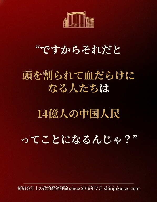 日本が為すべきは、中国サイドの非常識ぶりを即時喧伝し、国際社会で共有することなのかとも。