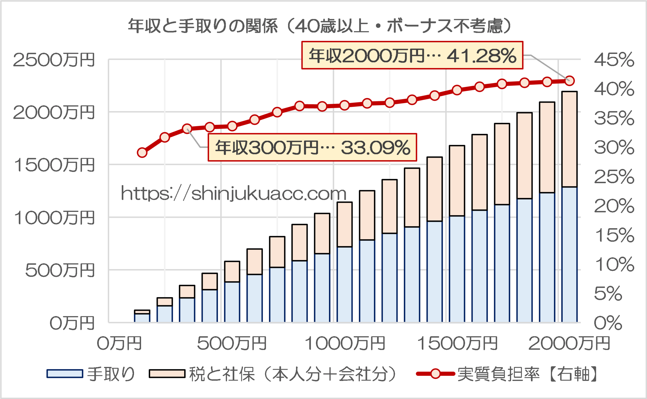 高所得だと40%を超えるが…年収300万円でも重い負担