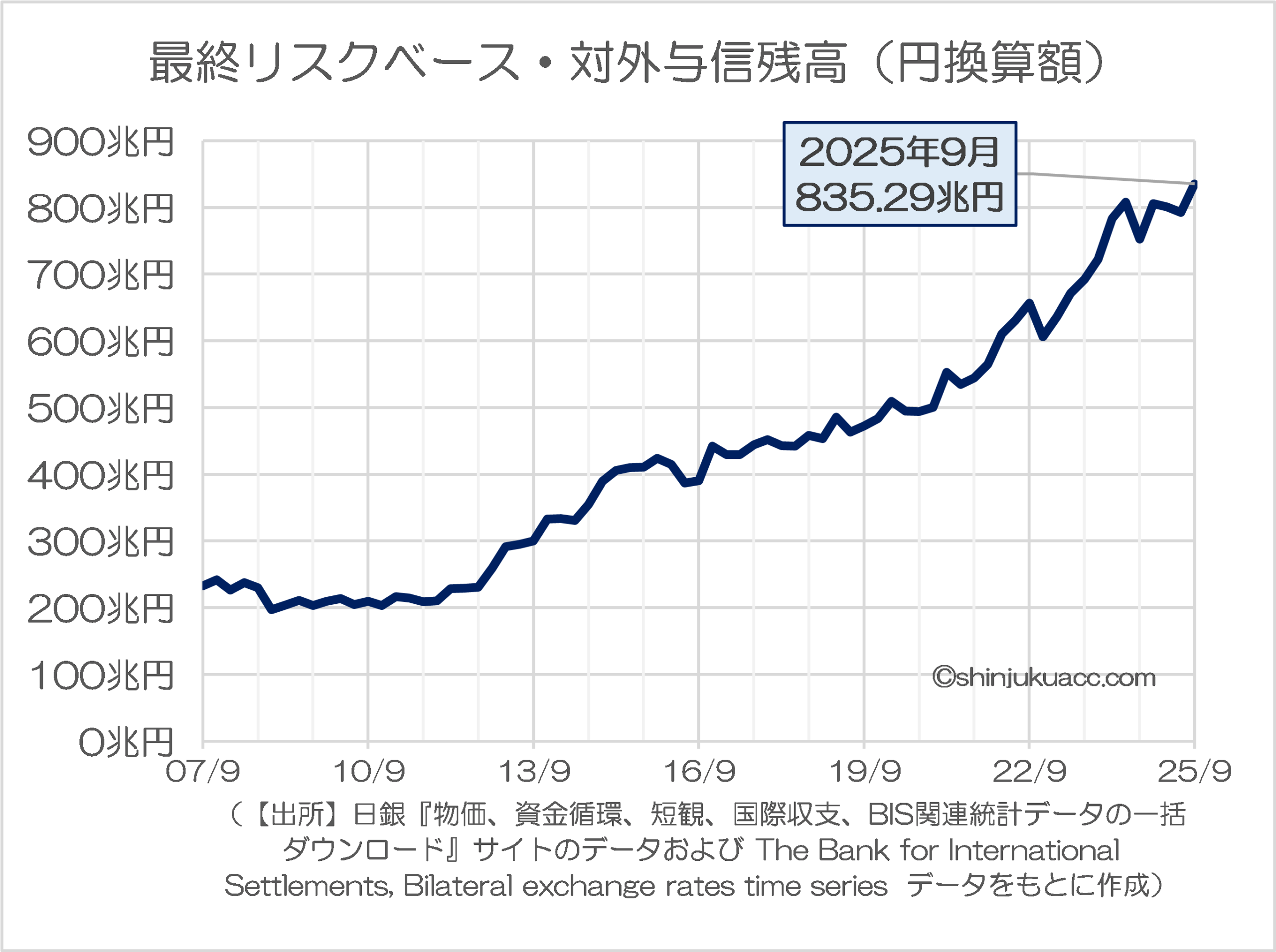 (※ちなみに邦銀は2015年9月期以降、2025年6月期に至るまで、じつに10年連続で対外与信額が世界最多だったりもします。)