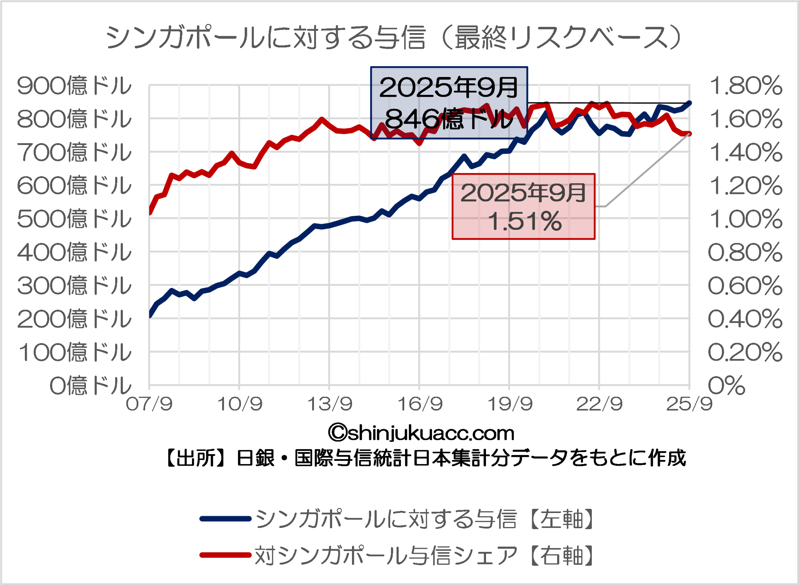 そして、香港向け与信の低下と好対照をなしているのが、シンガポール向け与信が順調に増えている点です。