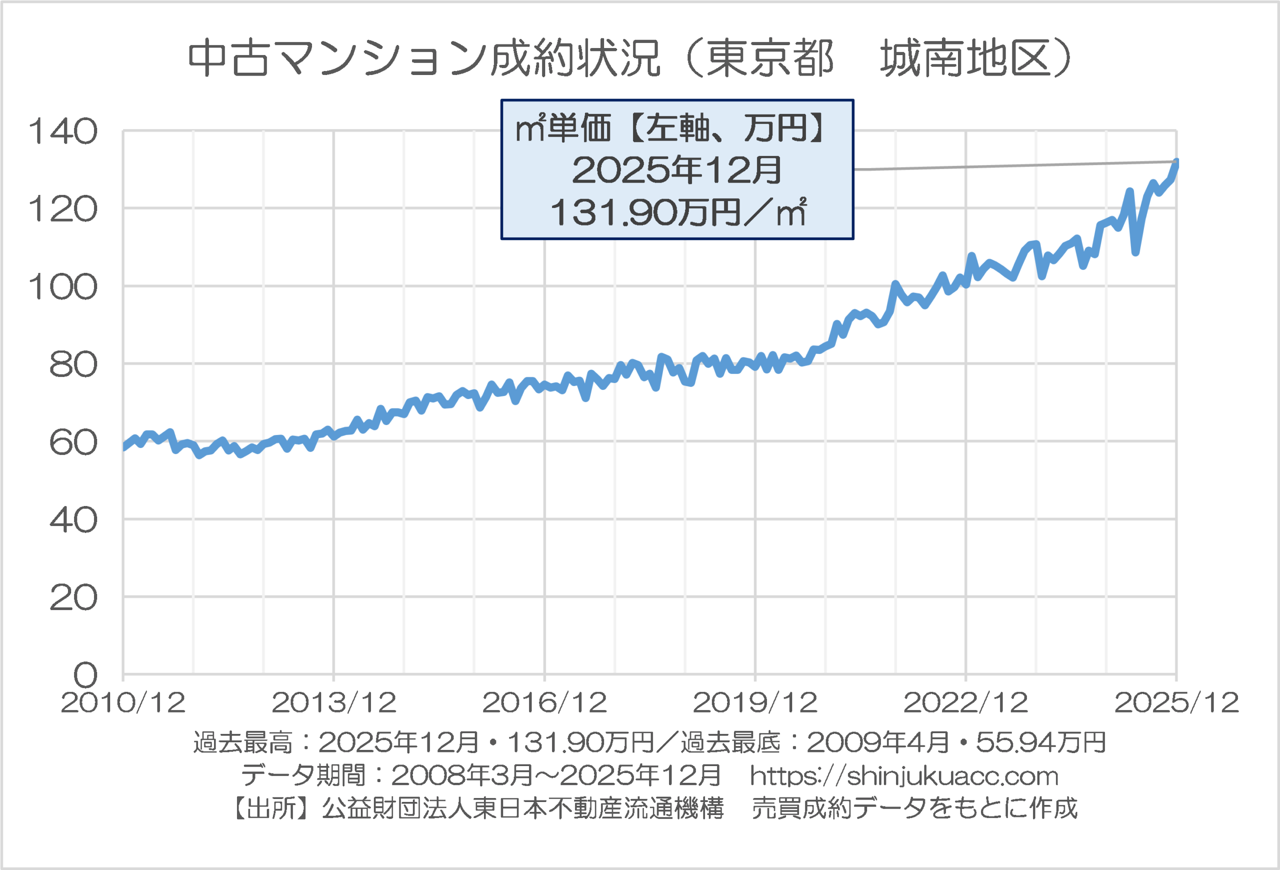 城南地区131.90万円(2025年12月)55.94万円(2009年3月)2.36倍