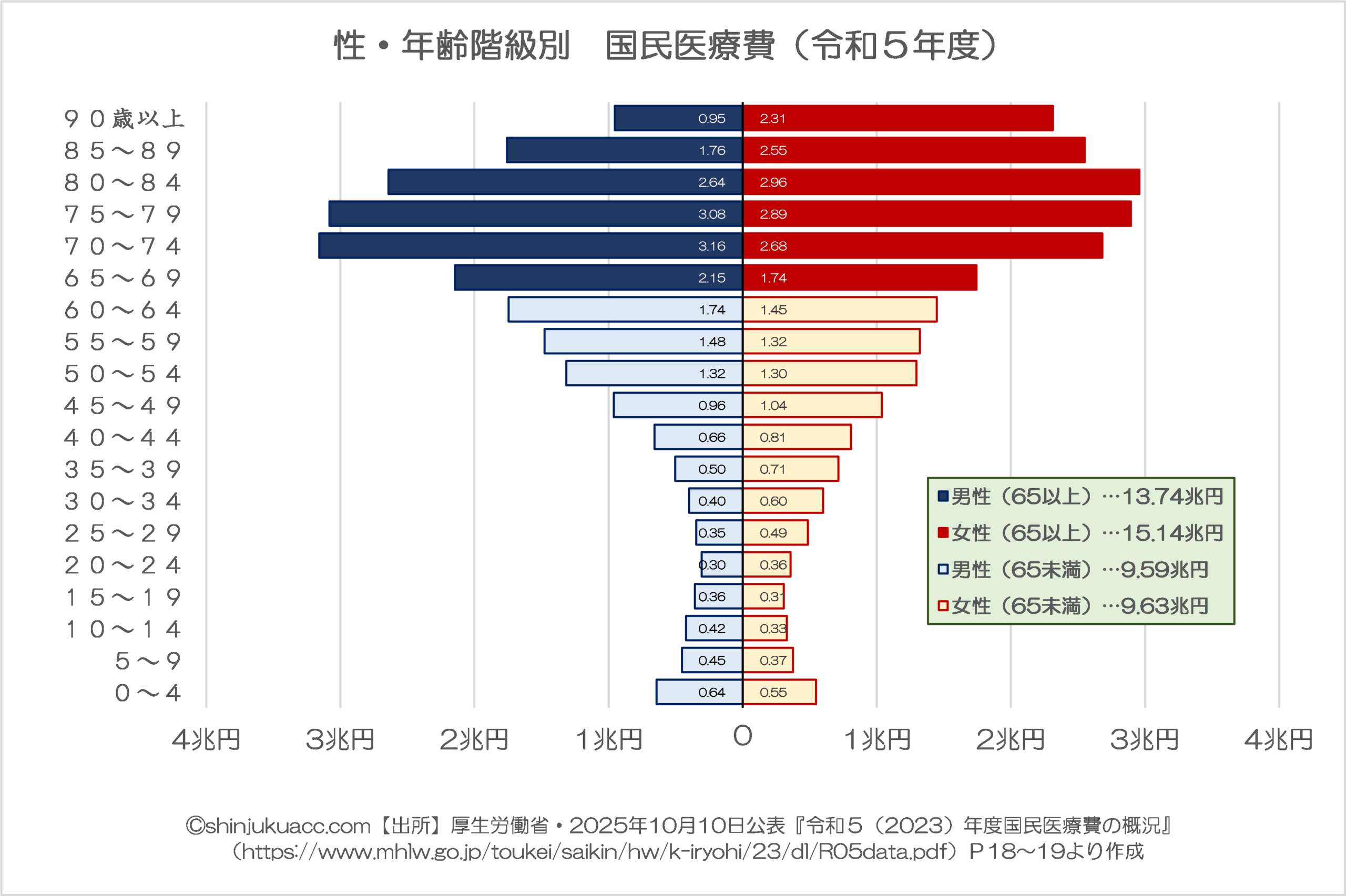 - 65歳以上:28兆8805億円(男13兆7388億円/女15兆1417億円)