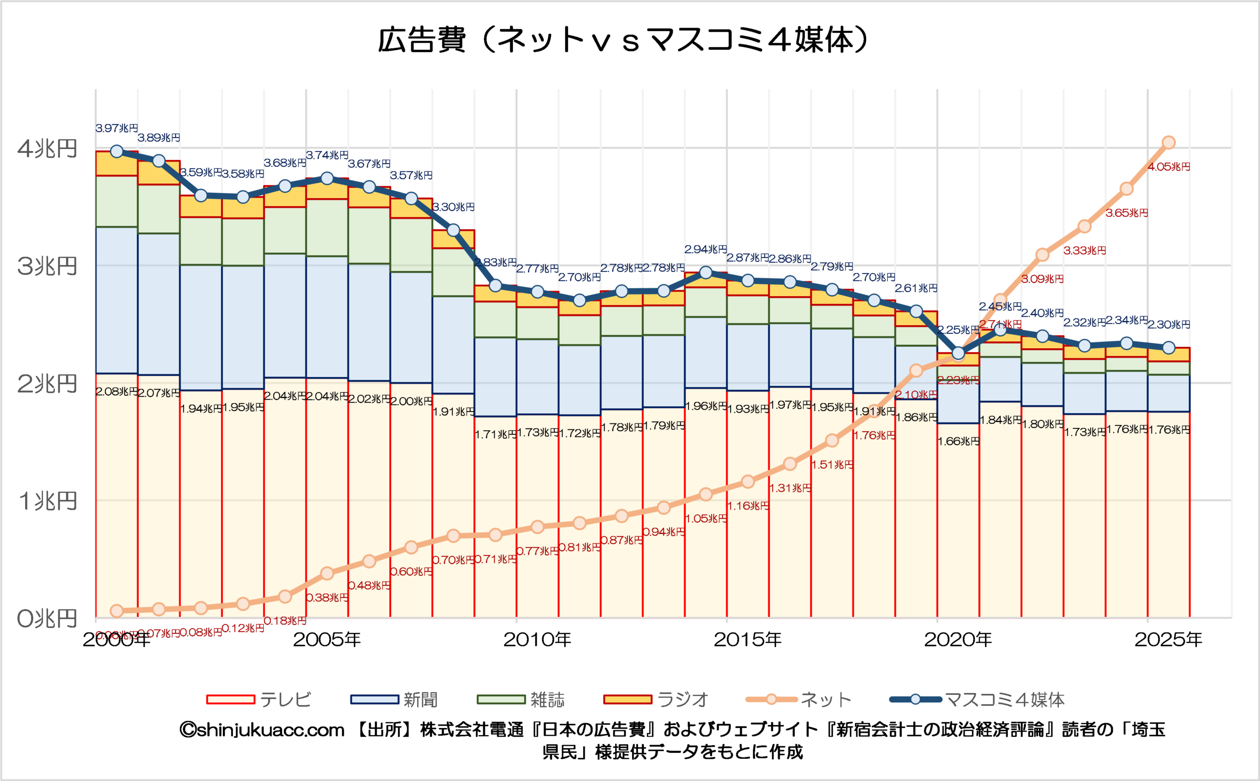 図表2 広告費(ネットvsマスコミ4媒体)
