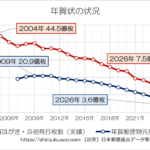 2026/01/06 12:00 / 最終更新日時 : 2026/01/06 10:57 新宿会計士 経済全般年賀状じまい加速か…個人情報保護法と消えゆく年賀状 年賀状は発行枚数も激減していますが、配達件数も激減しているようです。日本郵便が元日に公表したデータによると2026年1月1日の年賀郵便物元旦配達物数は3.6億枚で、前年比1.3億枚も落ち込みました。これにはメールなどが発 […]